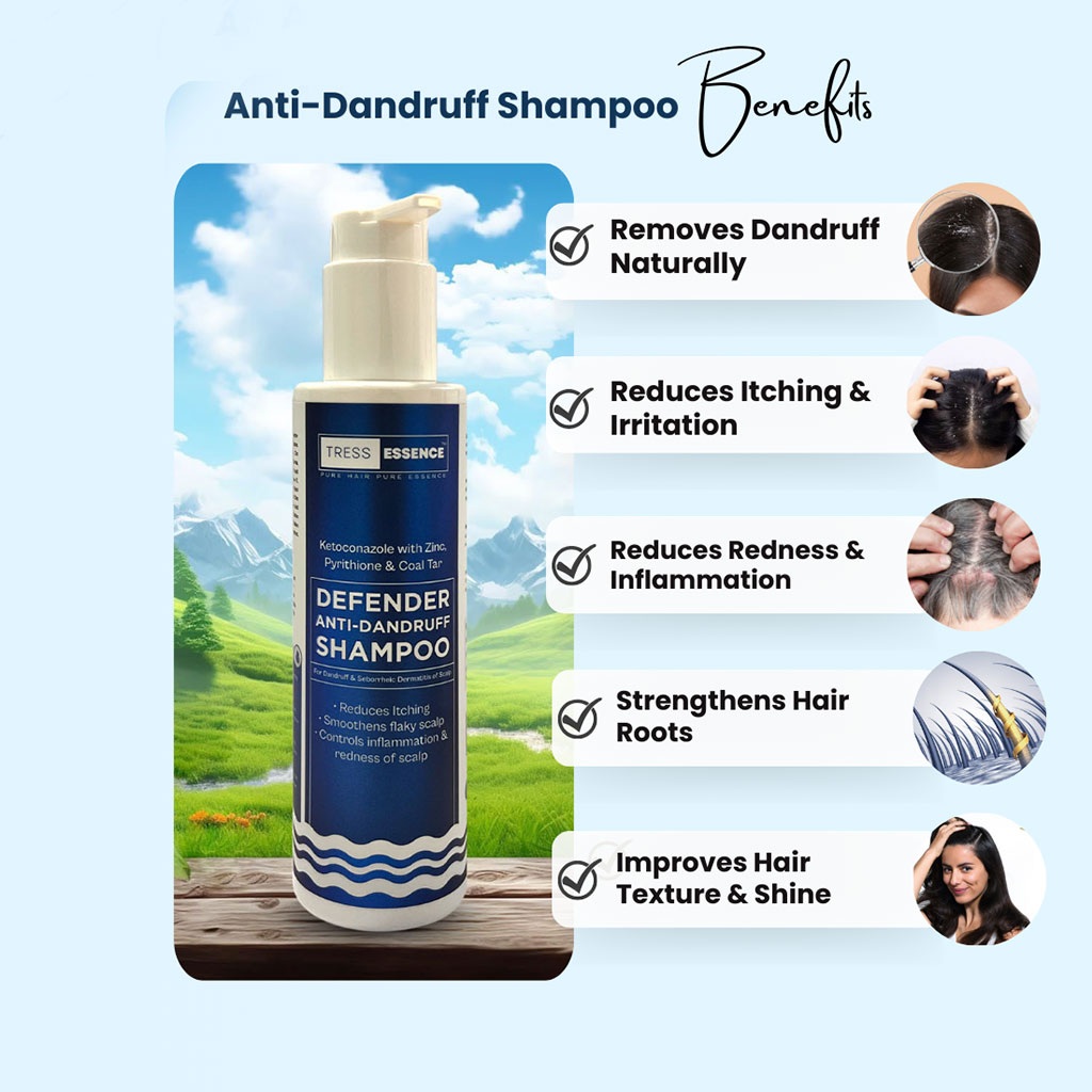 + Free ShippingDefender Anti-Dandruff Shampoo | Reduce up to 100% dandruff | Helps Reduces Itching, Smoothens flaky scalp & control redness scalp | Suitable For All Hair Types