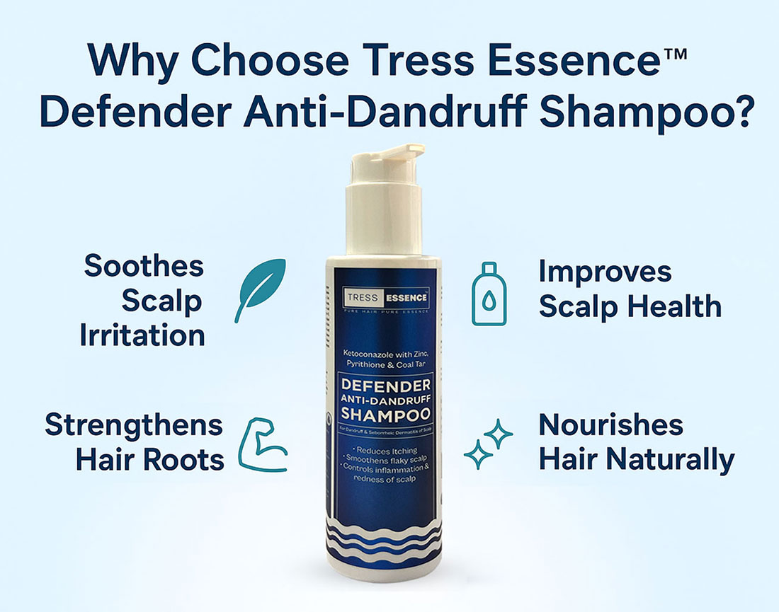 Tress Essence Defender Anti-Dandruff Shampoo fights dandruff at the root, giving you a flake-free, itch-free scalp! Infused with powerful ingredients, it soothes irritation, reduces redness, and strengthens hair for a healthier, fresher feel. Say goodbye to dandruff and hello to strong, clean hair!